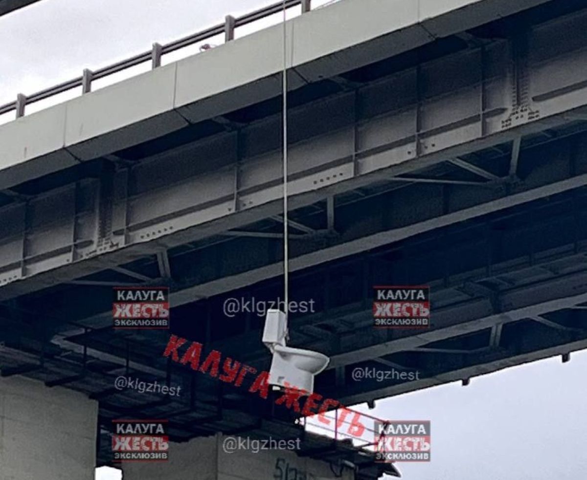 Тг-канал «Калуга Жесть»: на Гагаринском мосту повесили унитаз