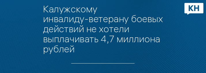 Калужскому инвалиду-ветерану боевых действий не хотели выплачивать 4,7 миллиона рублей