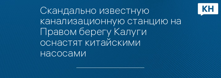 Скандально известную канализационную станцию на Правом берегу Калуги оснастят китайскими насосами