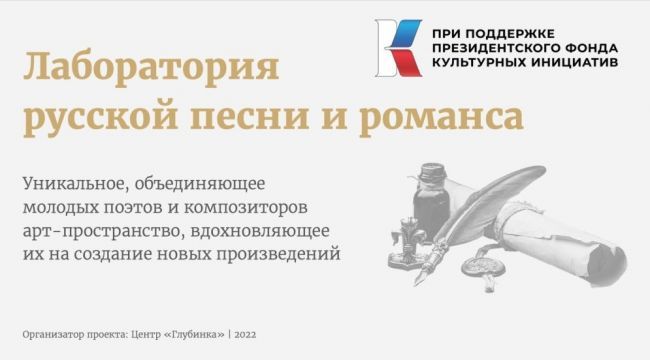18 июня в парке-отеле "Мечта" под Орлом начнет работу "Лаборатория русской песни и романса" - трехнедельный "марафон" лекций и мастер-классов для молодых поэтов, исполнителей и композиторов, сообщают наши коллеги из "Орловских новостей". Мероприятия будут проходить до 8 июля.