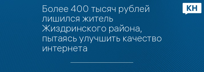 Житель Жиздринского района лишился 400 тысяч рублей, пытаясь улучшить интернет