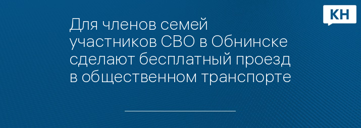 Для членов семей участников СВО в Обнинске сделают бесплатный проезд в общественном транспорте
