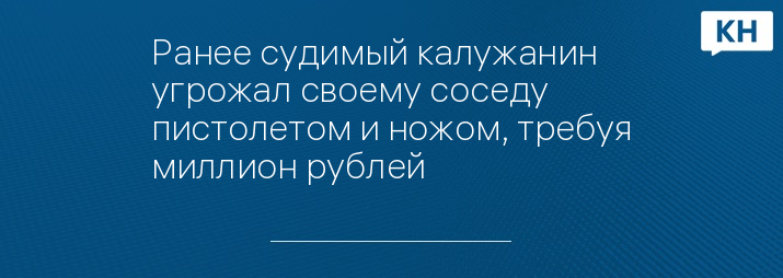Ранее судимый калужанин угрожал своему соседу пистолетом и ножом, требуя миллион рублей