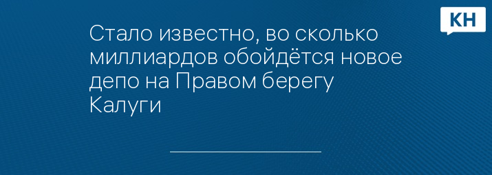 Стало известно, во сколько миллиардов обойдётся новое депо на Правом берегу Калуги