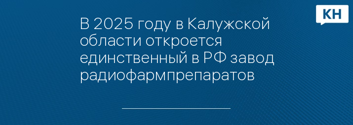 В 2025 году в Калужской области откроется единственный в РФ завод радиофармпрепаратов