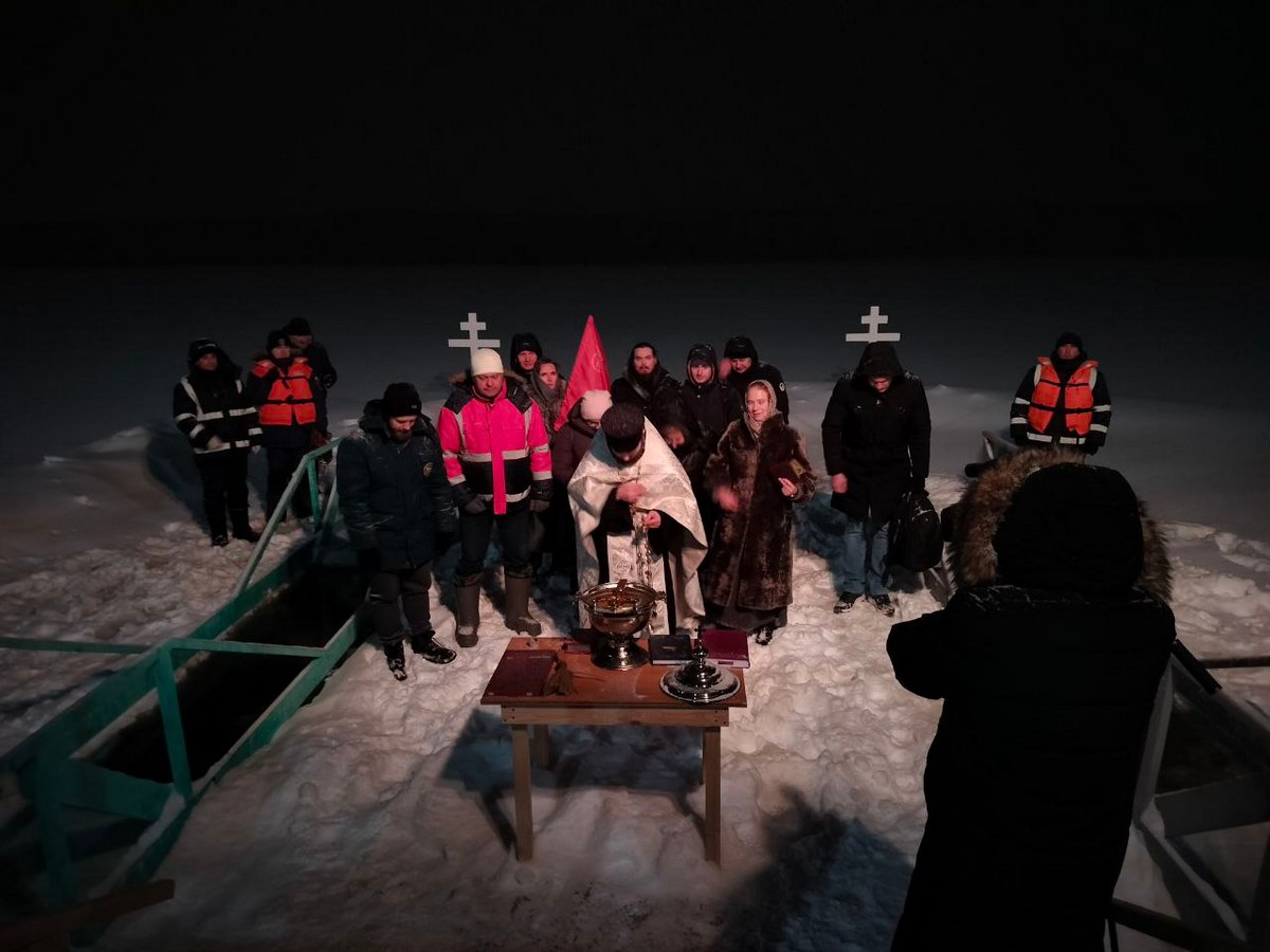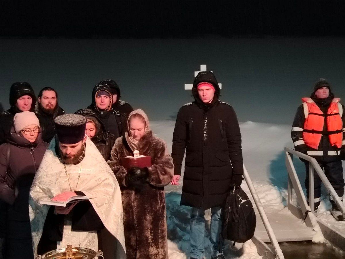 Сначала священник совершил освящение воды, потом все желающие могли окунуться в воду.