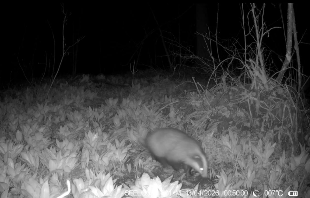 В Калужской области фотоловушка запечатлела первого после спячки барсука