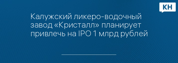 В рамках первичного размещения акций на Мосбирже (IPO) владельцы Калужского ликеро-водочного завода «Кристалл» планируют привлечь 1 млрд рублей. Об этом сообщает "Федеральный Бизнес Журнал".