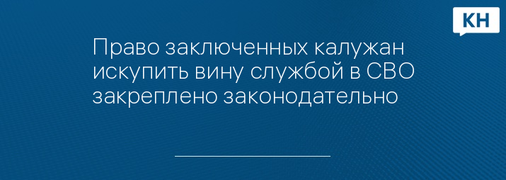 Право заключенных калужан искупить вину службой в СВО закреплено законодательно