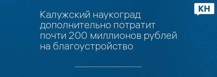 Калужский наукоград дополнительно потратит почти 200 миллионов рублей на благоустройство