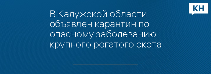 В Калужской области объявлен карантин по опасному заболеванию крупного рогатого скота