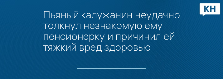 Пьяный калужанин неудачно толкнул незнакомую ему пенсионерку и причинил ей тяжкий вред здоровью