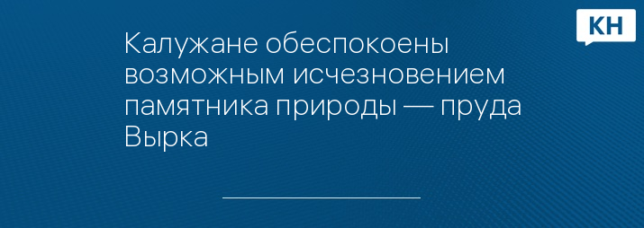 Калужане обеспокоены возможным исчезновением памятника природы — пруда Вырка
