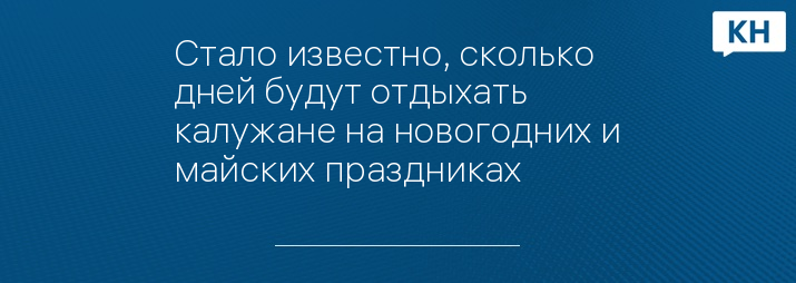 Стало известно, сколько дней будут отдыхать калужане на новогодних и майских праздниках