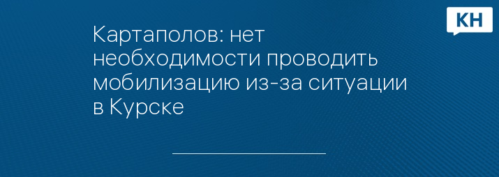 Картаполов: нет необходимости проводить мобилизацию из-за ситуации в Курске