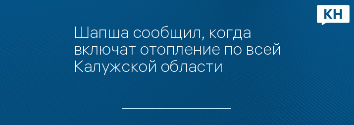 Шапша сообщил, когда включат отопление по всей Калужской области