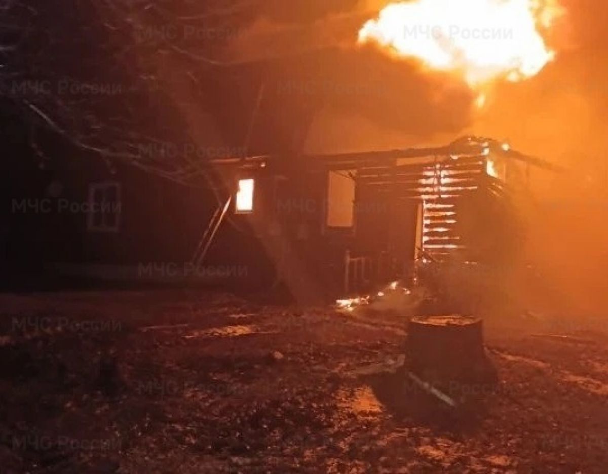 В Калужской области семеро пожарных тушили полыхающий жилой дом
