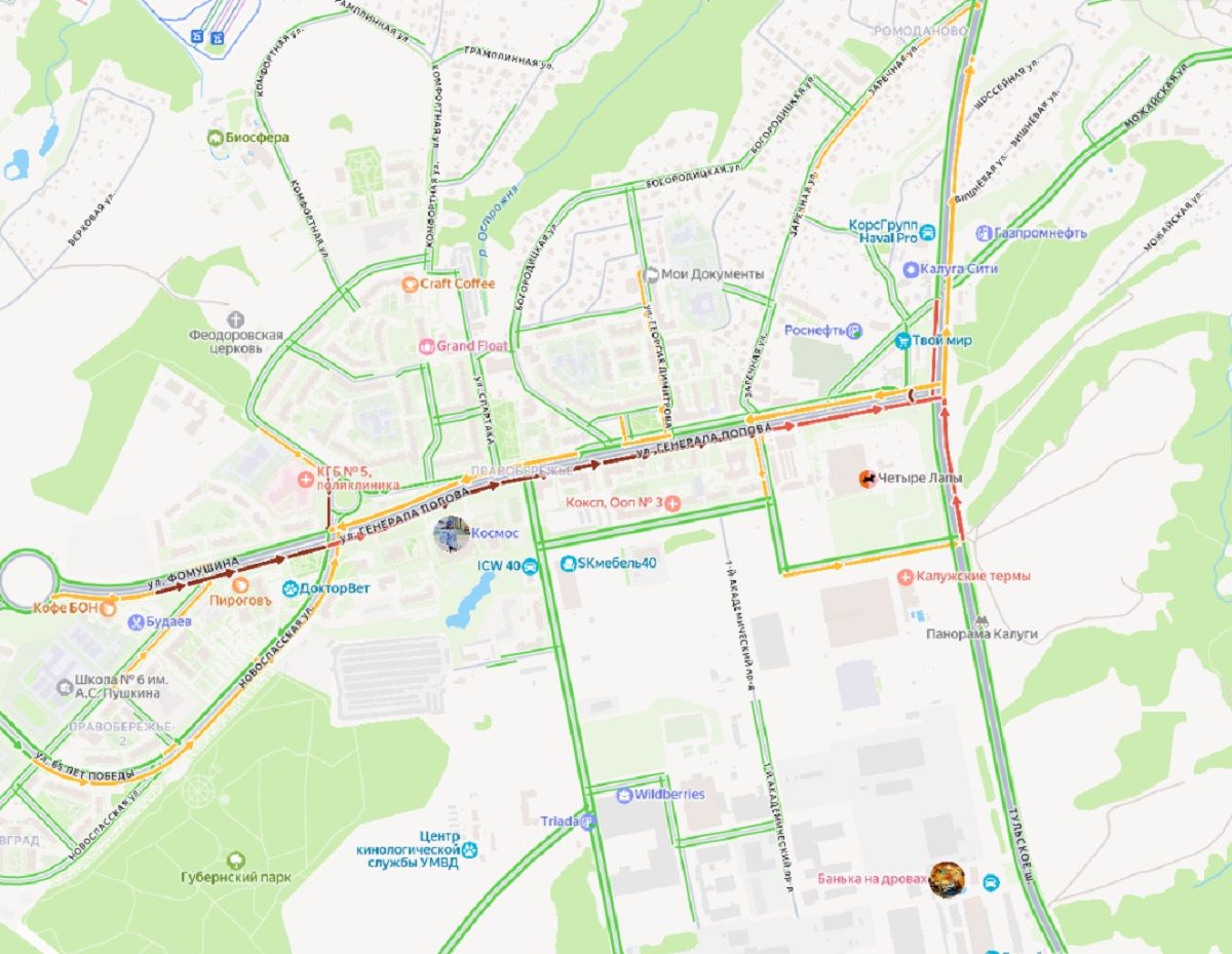 Утром 16 февраля в Калуге на правом берегу образовалась большая пробка