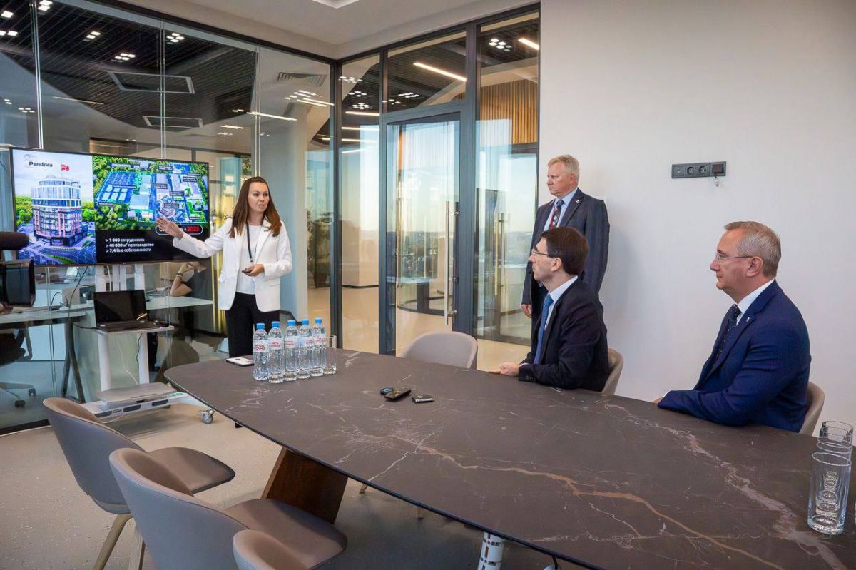 Далее состоялось посещение компании «Пандора», где реализуется проект подготовки кадров. Студенты БГТУ им. Баумана проходят здесь стажировки под руководством уже опытных наставников. Предприятие произвело треть всех электрозаправок, установленных в Москве в прошлом году.
