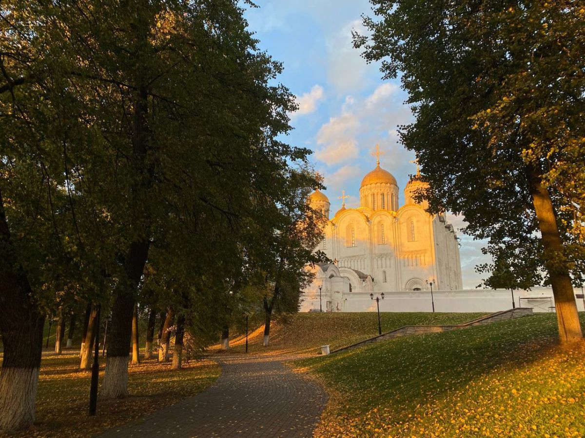 Церковь Покрова на Нерли находится в Боголюбово. Она стоит в отдалении от домов и больше подойдет для уединенных и долгих прогулок. Храм красив круглый год, а осенью яркие цвета только украшают место.