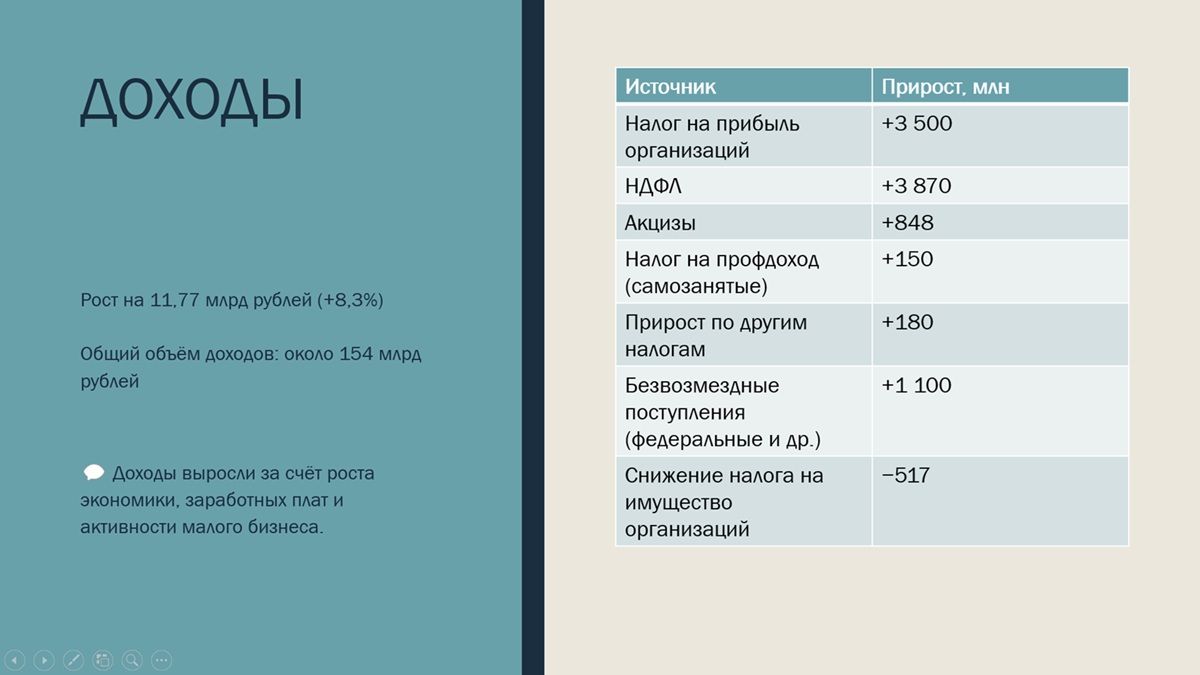 налог на прибыль организаций — рост на 3,5 млрд руб., благодаря увеличению прибыли предприятий региона;