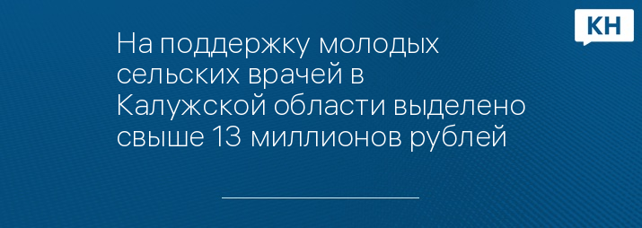 На поддержку молодых сельских врачей в Калужской области выделено свыше 13 миллионов рублей