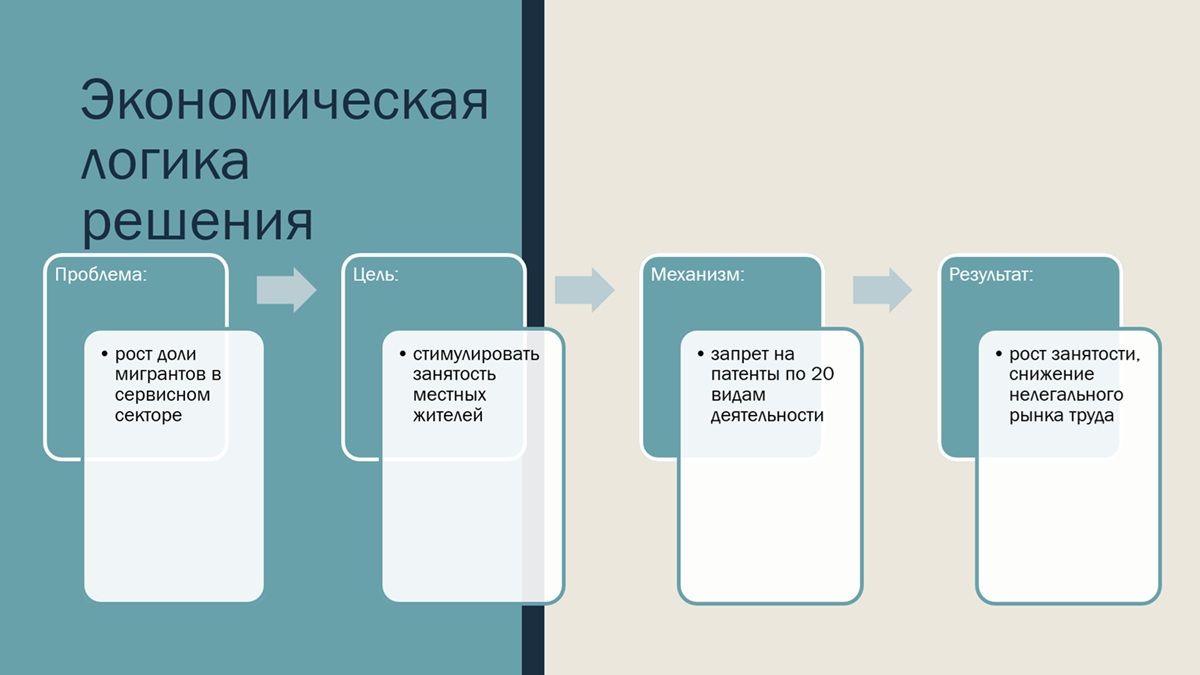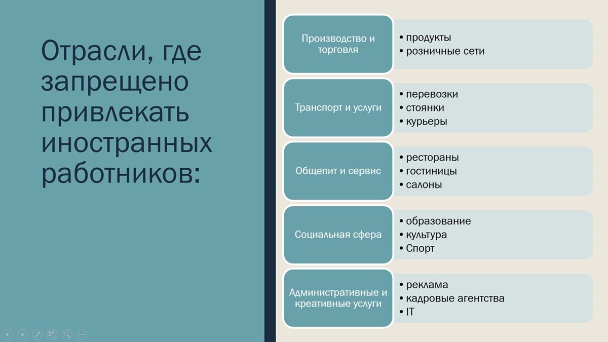Таким образом, запрет охватывает как производственные, так и сервисные отрасли, где традиционно занята значительная доля мигрантов.