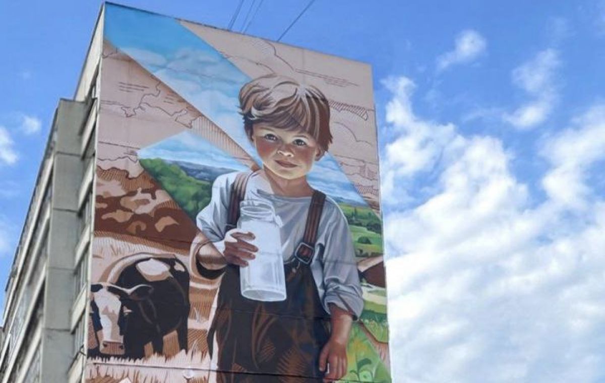 «Этой работой попытался привнести в городское пространство теплые чувства: утро в деревне, вкус лета, запах свежего молока и ту самую детскую искренность», – написал автор граффити.