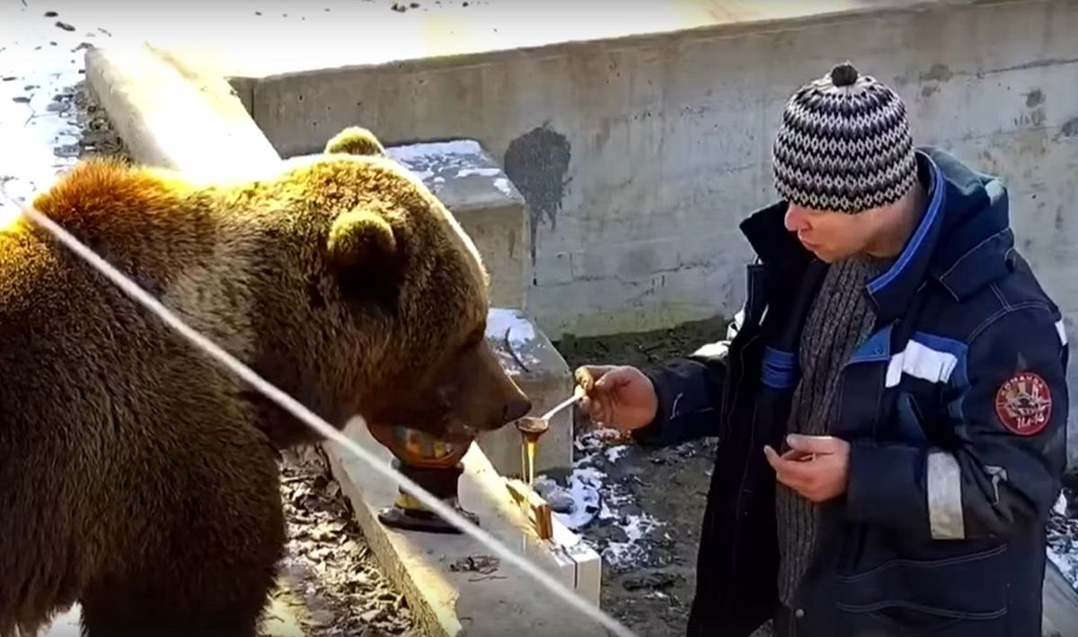 Калужский авиамедведь Мансур запасается энергией перед зимой, угощаясь медом