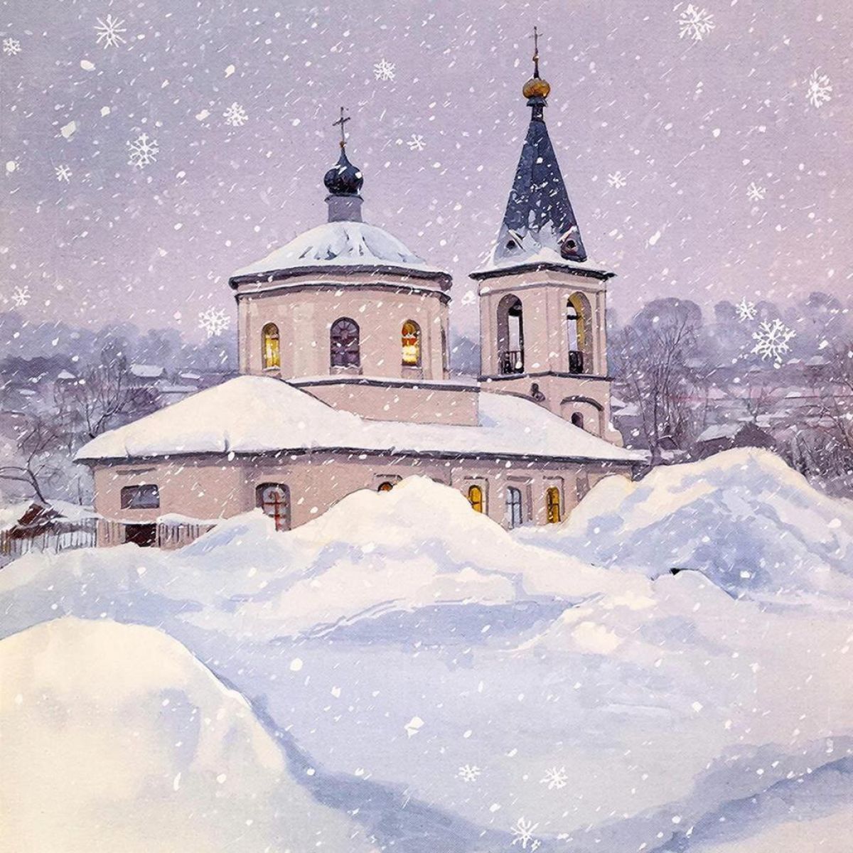 Для создания иллюстраций редакция обратилась к нейросети, поставив перед ней задачу передать заснеженную Калугу, а также библейский сюжет Крещения. Искусственный интеллект блестяще справился, на открытках можно увидеть знакомые городские пейзажи, купели, храмы и символику праздника.