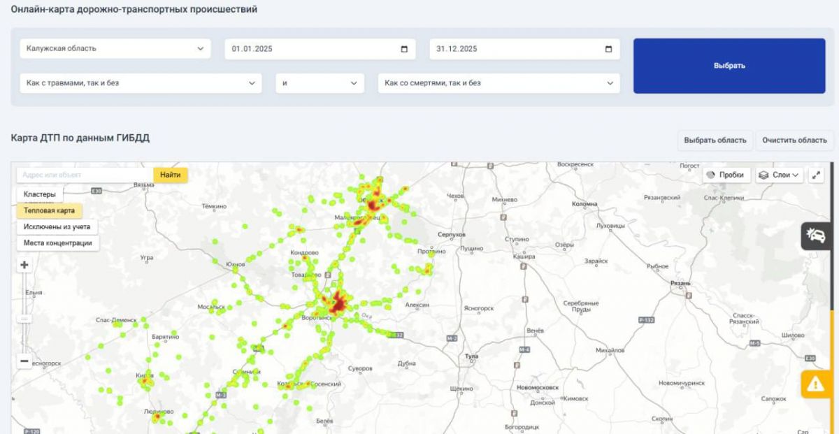 Что же касается Калуги, то здесь в 2025 году произошло 212 ДТП. К наиболее аварийным участкам города относились следующие места: пересечение улицы Гагарина и Академика Королева, пересечение улиц Плеханова и Дзержинского, развязка Гагаринского моста, пересечение тульского шоссе и улицы Генерала Попова. Также наибольшее количество аварий происходило чаще всего на улице Пушкина, Ленина, Московской и в районе арены КТЗ.