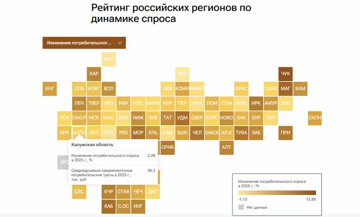 Калужская область на 64 месте по динамике потребительского спроса в 2025 году