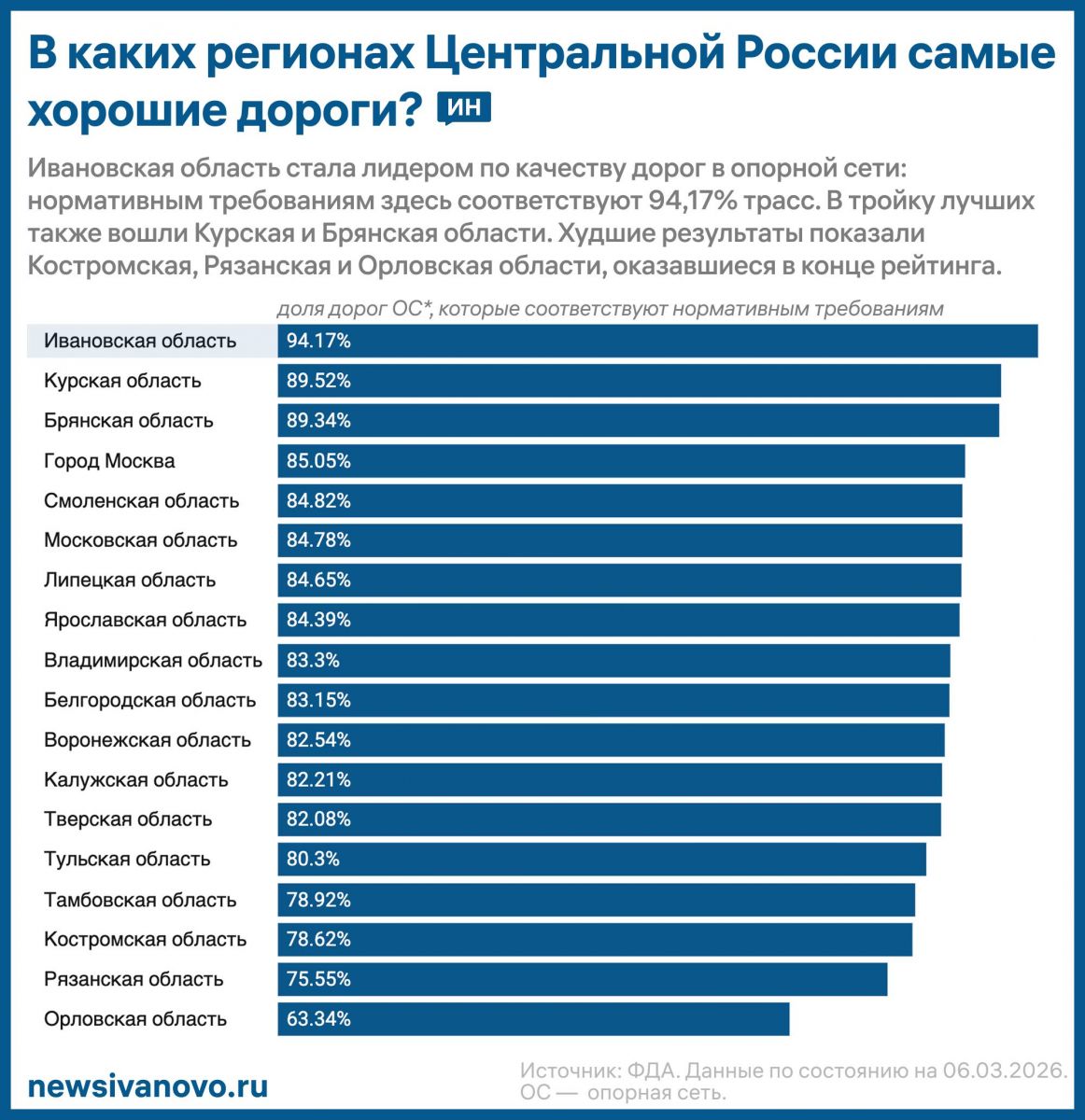 Что любопытно, на 1 месте оказалась Ивановская область с 94,17%. А Москва даже не на 3, а на 4, с 85,05%. Замыкают список Костромская (78,62%), Рязанская (75,55%) и Орловская области (63,34%).