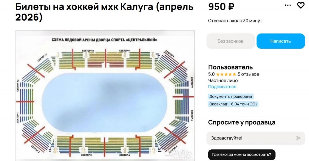 За билет на матч МХК «Калуга» перекупщики просят 1500 рублей