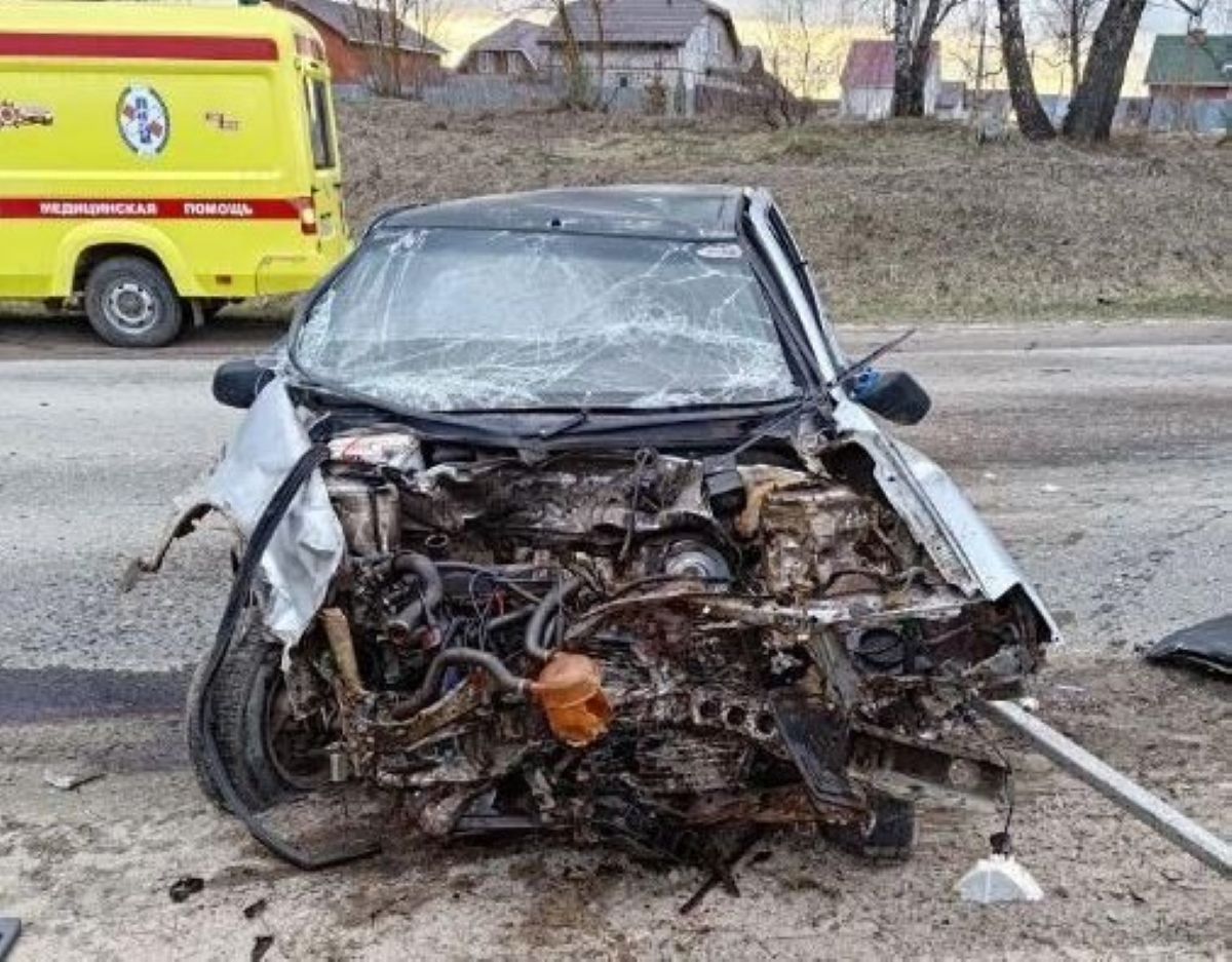 В жесткой аварии в калужской деревне автомобиль вылетел в кювет и перевернулся - пострадали люди