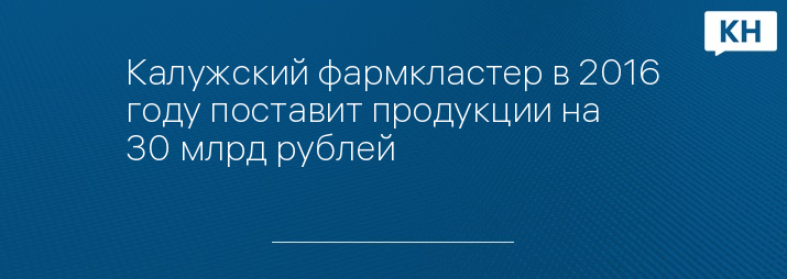Калужский фармкластер в 2016 году поставит продукции на 30 млрд рублей