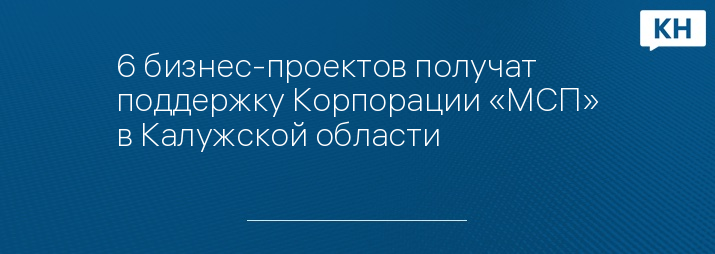 6 бизнес-проектов получат поддержку Корпорации «МСП» в Калужской области