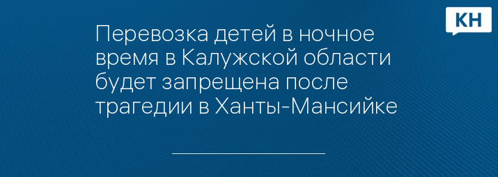 Перевозка детей в ночное время в Калужской области будет запрещена после трагедии в Ханты-Мансийке