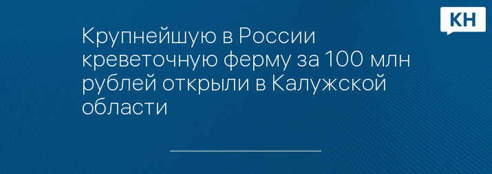 Крупнейшую в России креветочную ферму за 100 млн рублей открыли в Калужской области
