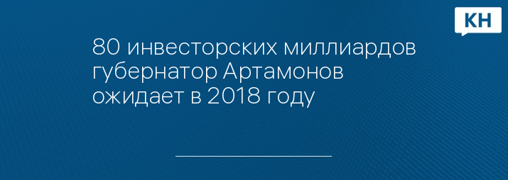 80 инвесторских миллиардов губернатор Артамонов ожидает в 2018 году