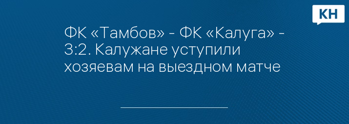 Калужские футболисты на первенстве России проиграли в матче лидеру турнира, команде из Тамбова. Окончательный счет матча ФК «Тамбов» - ФК «Калуга» - 3:2.