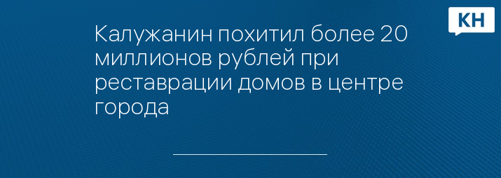 30-летнего калужанина обвиняют в хищении более 20 миллионов рублей, выделенных на проведение ремонтно-реставрационных работ 5 домов на улице Ленина и Воскресенской.