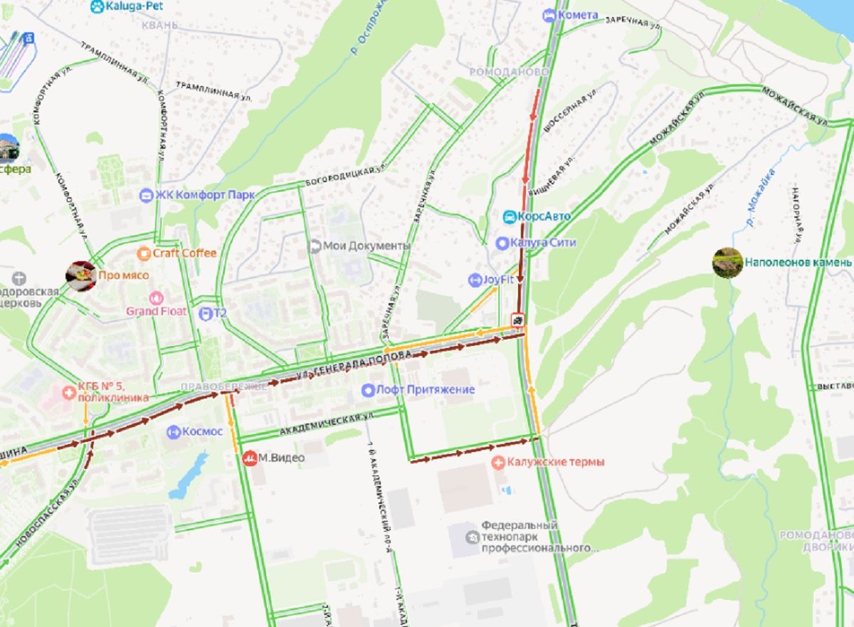 Правый берег в Калуге встал в огромной пробке из-за ДТП