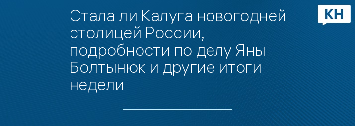 Стала ли Калуга новогодней столицей России, подробности по делу Яны Болтынюк и другие итоги недели