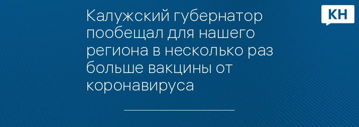 Калужский губернатор пообещал для нашего региона в несколько раз больше вакцины от коронавируса