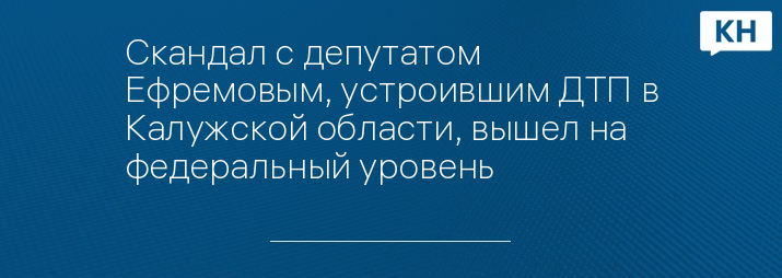 Скандал с депутатом Ефремовым, устроившим ДТП в Калужской области, вышел на федеральный уровень. Об инциденте написал ряд федеральных СМИ, среди которых РЕН ТВ, Политика Сегодня и некоторые другие.