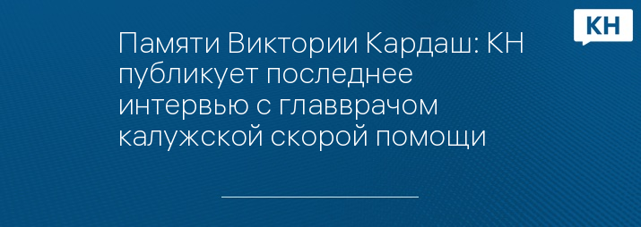 Памяти Виктории Кардаш: КН публикует последнее интервью с главврачом калужской скорой помощи