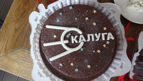 Всего было пять кондитерских изделий. Как и было заявлено - все они были оформлены в "космической" тематике. Причем, украшения были самые разные: от макета ракеты "Восток" из белого шоколада, до изображения калужского "Шарика".