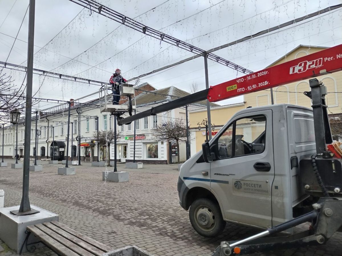 На Театральной улице в Калуге начали развешивать новые гирлянды