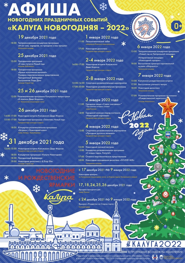 Публикуем афишу новогодних гуляний в Калуге